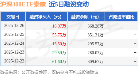 2025-12-30开元,开元棋牌,开元体育,开元棋牌入口,开元APP,开元棋牌官网,开元棋牌官方网站,开元官方网站,开元棋牌APP下载,开元棋牌网站,开元棋牌下载,开元棋牌app下载,开元棋牌试玩,开元体育app下载证券之星消息,12月26日,沪深300ETF泰康(515380)融资买入144.17万元,融资偿还127.2万元,融资净买入16.97万元,融资余额368.28万元,近3个交易日已连续净买入累计88.21万元,近20个交易日中有12个交易日出现融资净买入。