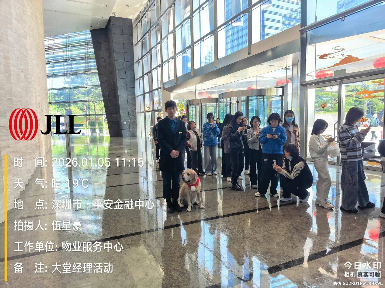 记者采访得知,这尊塑像的原型——东东,以及它的三位伙伴小白、顺心、小胖组成的“汪汪队”,并非平安金融中心物业饲养的普通宠物犬,而是经过公安系统备案、肩负安保重任的专业搜爆犬,这群“治愈系萌娃”已默默守护大厦安全近九年。